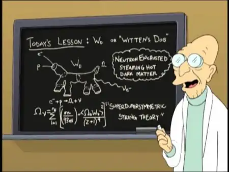 В курсе лекций, читаемых в Марсианском университете профессором Фарнсвортом (математика квантово-нейтринных полей) (1ACV11 Mars University) появляется некая диаграмма, которая, согласно комментариям к эпизоду на ДВД, была специально нарисована физиком Дэвидом Шиминовичем и называется «пёс Виттена» (явная пародия на «кота Шрёдингера», см. далее - прим MG)