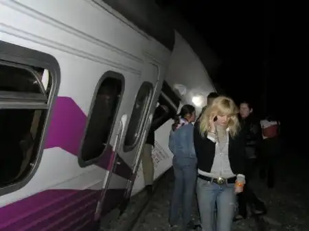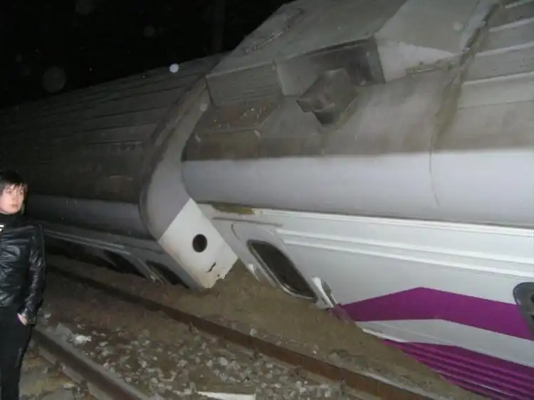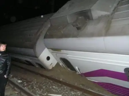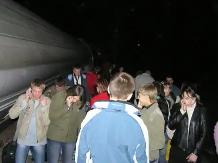Ехали нормально. Как всегда дурацкое кино, как всегда чай. Уже около 22:30 все началось. Ессно пронеслось в одно мгновение. Я ехал в самом начале вагона, спиной по ходу движения, чему безумно рад. Перед нами был только вагон-автомобилевоз. Едем-едем, вдруг толчок. Как всегда первая мысль, когда просыпаешься ночью от толчка в вагоне - толкнет и успокоится. Ан нет, вагон начало бросать из стороны в сторону. Потом он начал крениться со скрежетом. С полок посыпался багаж. Среди пассажиров шума особого не было. Когда все улеглось, начали разбираться всё и все ли в порядке. В вагоне никто особо не пострадал, вроде видел что проводница ушиблась.