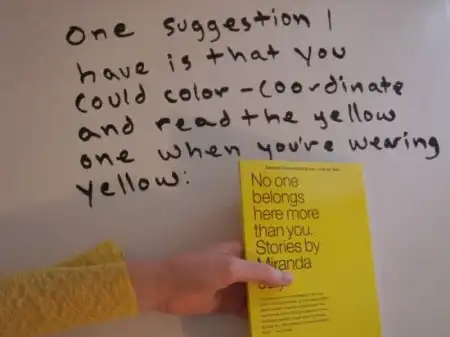 "Одно из моих предположений: вы можете согласовывать цвета, т.е. читать желтую книжку, когда одеты в желтое"