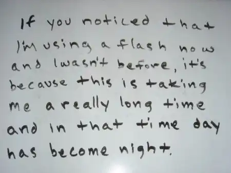 "Если вы заметили, я начала использовать вспышку. Это потому, что данное занятие занимает много времени - и в течении этого времени день сменился ночью"