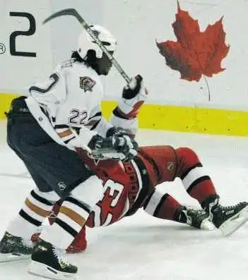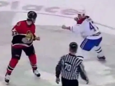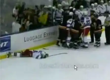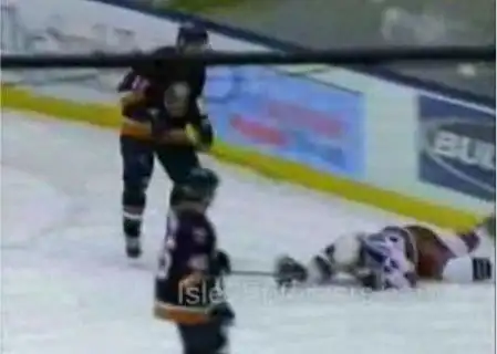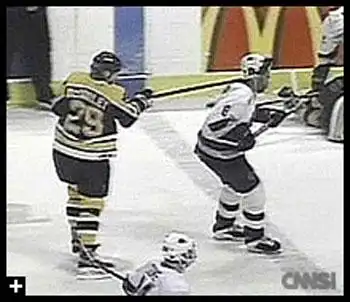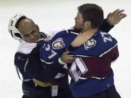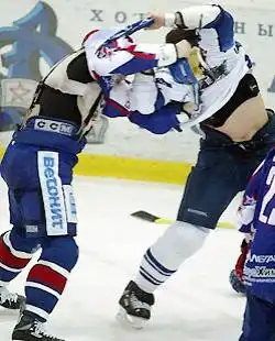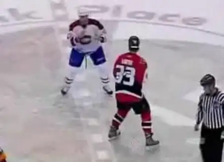Ну, и классический мордобой... Это когда двое, просто проезжая мимо друг друга, вдруг срывают перчатки и...Сначала хоккей превращается в бокс...