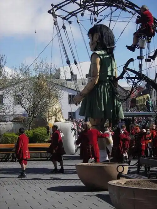 Со стороны может показаться, что жители Рейкьявика сошли с ума… Тем не менее, появление гигантской спасительницы – это часть красочного шоу, которое подготовили для жителей исландской столицы французский уличный театр под названием «Роял де люкс» (Royal de Luxe)…