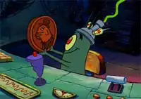 Планктон /Plankton/Хозяин ресторана "Мусорноое ведро". Главный злодей шоу. Никто не ест в его ресторане "Мусорноое ведро", которое находится через дорогу от "Красти Краб", поэтому он хочет украсть секретный рецепт Крабсбургера.