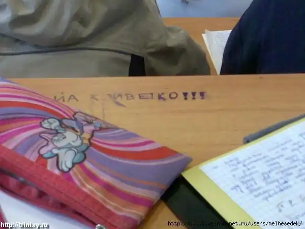 DreamMaker: Да..конечно лекция по физике у нашего препода довольно увлекательное и серьезное мероприятие.....Но когда перед тобой на парте красуется надпись : "ЙА КРИВЕТКО!"......