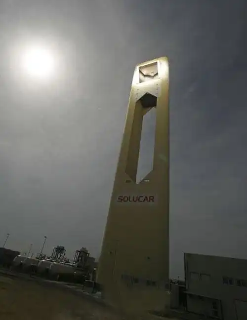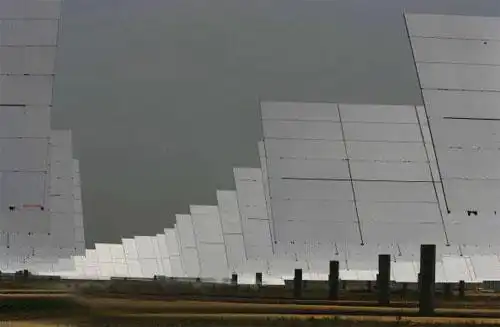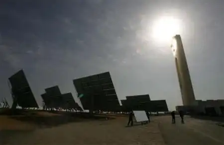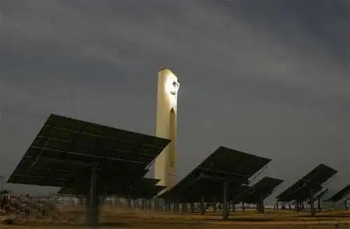 Принцип работы прост - поле из множества зеркал, отслеживающих движение Солнца, собирает свет и направляет его на вершину 115-метровой башни, где яркий солнечный зайчик превращает воду в пар.
