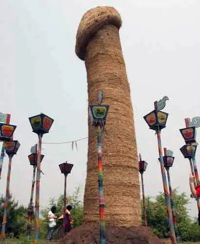 В китайском парке развлечений построили самый большой в мире пенис. 10-метровое сооружение под названием "Небесный столб" разместилось в парке Longwan Shaman в городе Чанчунь.