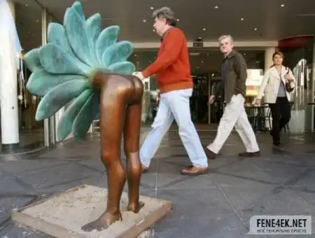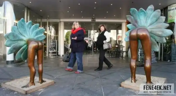 Бронзовые задницы у входа в один из супермаркетов вызывают неоднозначную реакцию прохожих и покупателей!