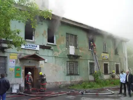 Выгорел практически весь второй этаж - там находилось несолько офисов (Багетная мастерская, Автосигнализации, Транснет...