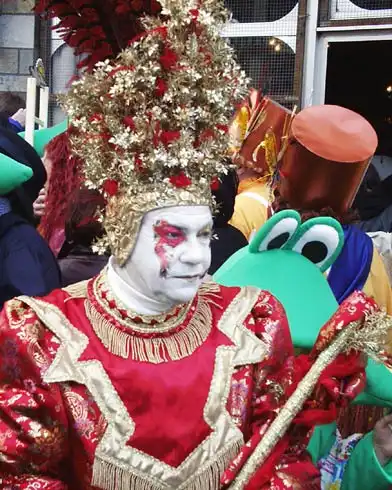В маленьком бельгийском городке Бинче 10 января начался традиционный ежегодный карнавал, по пышности и известности - очень из первых в Европе, после, пожалуй, разве что Венецианского. Главная достопримечательность карнавала - громадные "жилли", персонажи, напоминающие "пьеро" и "арлекинов" одновременно. В неимоверно ярких костюмах, они разгуливают по городку в первый день, приглашая полюбоваться своими нарядами. Во второй день карнавала обычно бывает бурное веселье, фейерверки, музыкальные шоу и танцы до упаду. А 12 января на улицах начинается настоящий апельсиновый бой, в котором нет проигравших и победителей, только - единая оранжевая с ног до головы толпа.