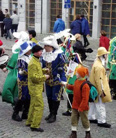 Binche - Карнавал в Бинче. 10-12 февраля. Ежегодный карнавал Бинч является в Европе вторым по величине после Венецианского, который, кстати, не считается особым праздником в провинциальной Бельгии. На карнавал съежается большое количество туристов из разных стран (Англия, США...) В течение трех дней на улицах городка Бинч можно увидеть участников карнавала, называемых Жилли. Они одеты в желтые костюмы, на которых изображены красные и черные львы, щедро набитые сеном. Вокруг тел Жиллей обвязаны звенящие колокольчики. В первый день карнавала через центр города проходит парад участников, демонстрирующих причудливые платья. Во второй день в Бинч приезжает молодежь на праздник студенческой солидарности. И, наконец, в третий - и последний день карнавала -