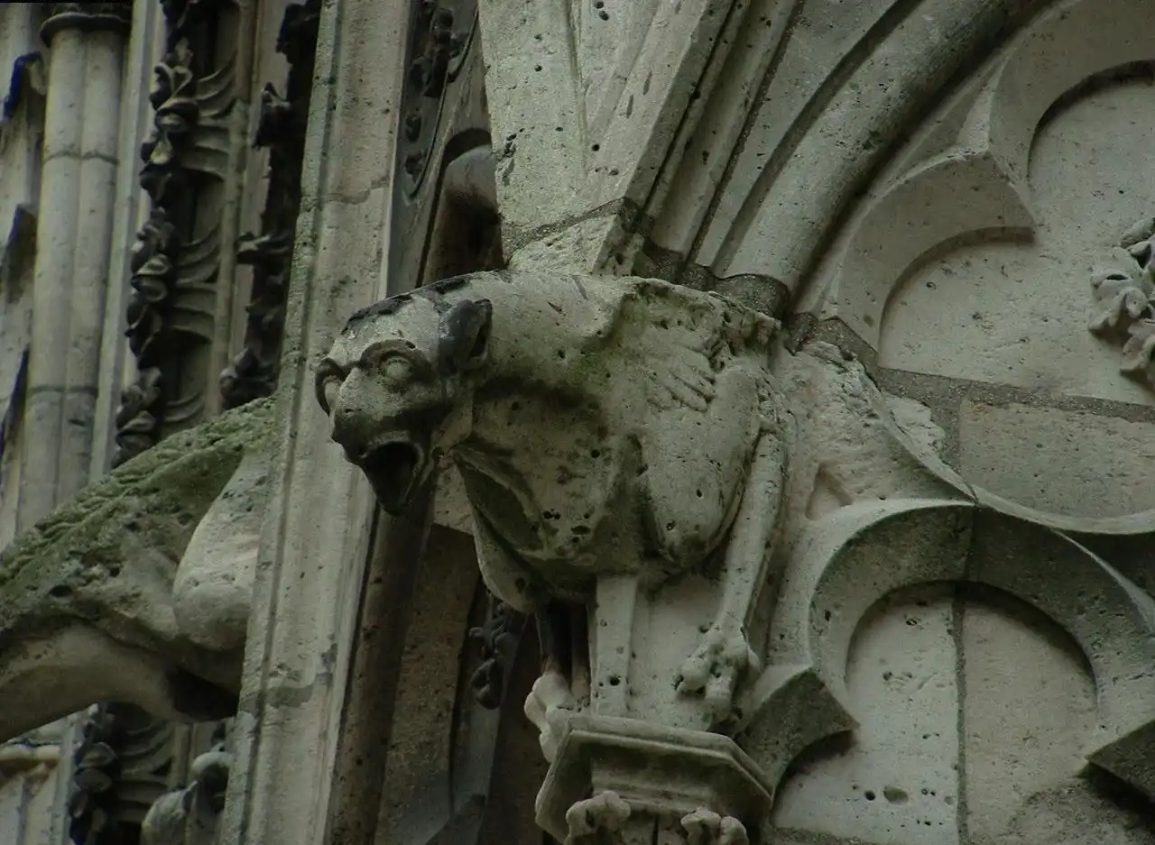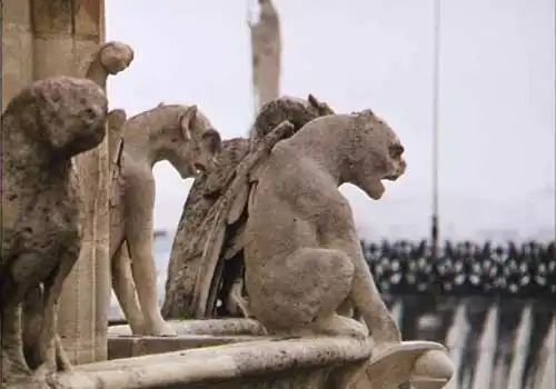 Гаргульи от старофранцузского gargouille - глотка, и своим звучанием имитирует булькающий звук, возникающий при полоскании горла. Первые гаргульи еще XII-XV в. устанавливались около водостоков, в качестве направляющей для воды - по средневековым поверьям - охранные статуи, которые устанавливались для украшения многих замков , храмов, соборов и прочих строений готического стиля. Как безжизненная каменная статуя может охранять что-нибудь? Считается что при опасности и по ночам горгули могли оживать...