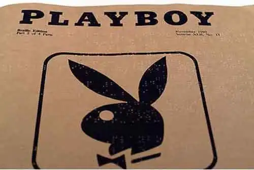 Легенда гласит, что в 1995 года основатель империи "Плейбой" и всеобщий любимец Хью Хефнер решил "подтянуть" новую аудиторию. Слепых. Было решено, что ноябрьский номер журнала, вот этот, будет напечатан рельефно-точечным шрифтом по системе Брайля...