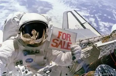 Астронавт Dale A. Gardner был сфотографирован с табличкой "Продам шатл". 14 ноября 1984 года.