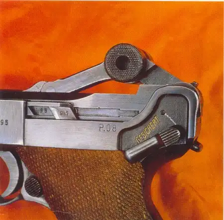 В пистолете Люгера в отличии от пистолета Борхардта рычаги при складывании упирались не в пластинчатую возвратную пружину, а в корпус рамы пистолета, сама же пружина находилась в рукоятке, что дало возможность значительно сократить массу и габариты пистолета при сохранении высоких служебно-эксплуатационных характеристик.