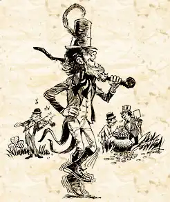 С собой лепреконы носят два кожаных кошелька. В одном из них – серебряный шиллинг, магическая монетка, которая всегда возвращается в кошелек, если ею расплатиться. В другом они носят золотую монету, которую использует для подкупа честных людей, оказавшись в трудной ситуации. Эта монетка обычно превращается в листья или пепел, как только лепрекон с ней расстается. С лепреконов нельзя сводить глаз, ибо они могут исчезнуть за секунду.