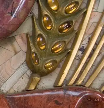 Техника исполнения: флорентийская и русская мозаика, резьба по камню, огранка, ювелирные работы, позолота, лепные работы.