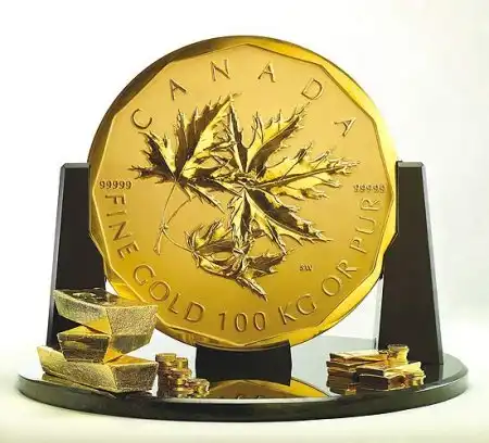 Громадная золотая монета весом 100 килограмм и номиналом в один миллион канадских долларов была создана художником Стэнли Уиттеном (Stanley Witten) по заказу Королевского монетного двора Канады (Royal Canadian Mint / Monnaie Royale Canadienne).