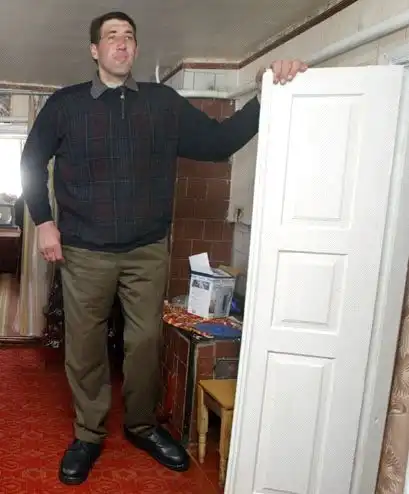 Житель Украины Леонид Стадник объявлен "Книгой рекордов Гиннеса" самым высоким человеком в мире. Украинец побил предыдущий рекорд китайца Бао Сишуня на 21 см. Рост 37-летнего бывшего ветеринара Стадника составляет 2 метра 57 сантиметров. Родители рекордсмена не отличались высоким ростом: рост его отца 1,73 метра, а матери - 1,52 метра. В детстве Леонид тоже не был особенно крупным. Стадник начал стремительно расти в возрасте 14 лет, после того как перенес операцию, которая, как полагают, повлияла на роботу гипофиза. К моменту получения диплома ветеринара и начала трудовой деятельности рост рекордсмена достигал 2 метров 3 сантиметров. Высокий рост не позволял мужчине ездит на велосипеде, и ему пришлось пользоваться автобусом, однако вскоре он и туда перестал помещаться. В итоге Стадник начал перемещаться на телеге, запряженной лошадьми.