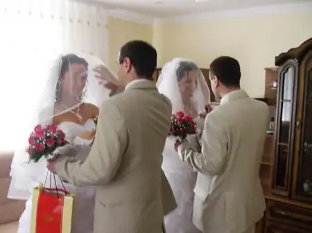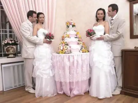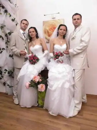 И здесь Витя, и Саша становятся на колена и начинают одновременно сознаваться нам в любви. -Очень интересно, что когда мы на работе сказали, что встречаемся с ребятами близнецами, все спрашивали: ”А кто это вас так познакомил?” Людей приводило в удивление, что всё происходило само по себе. И братья и сестры убеждают, что еще ни разу не перепутали своих любимых. «Мы же абсолютно разные - кто-то нежнее, у кого-то черты лица немного суровей, - уверяет Виктор. - Не заметить разницу можно разве что на расстоянии. Тем более, что уже давно не одеваемся одинаково. Хотя девушки нас очень привели в удивление, когда серьезно доказывали, что одна из них похожая на маму, а другая - на отца. Однако на собственную свадьбу Светлана и Валентина не только выбрали одинаковые платья, а и сделали такие же прически и макияж. «Из-за чего мы их почти не спутали, - улыбаются братья. - Особенно, когда лицо наших невест были закрыты фатой». Вместе пары и венчались. ”Молодой священник сначала тоже растерялся, - говорит Виктор. - Так как в его практике такой случай был первым. Поэтому не знал, з кого начинать”.