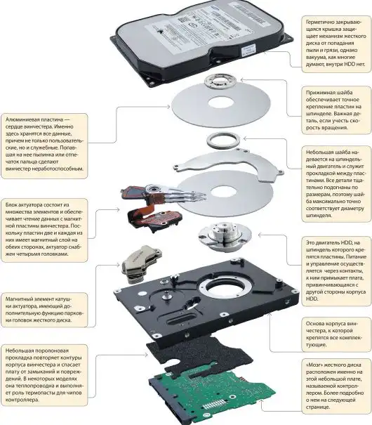 Внутри каждого ПК обязательно установлен жесткий диск, однако далеко не все владельцы компьютеров знают, как устроен винчестер. Мы решили провести небольшой ликбез с помощью наглядной схемы.