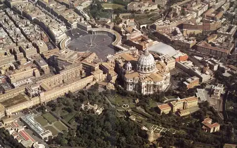 ВАТИКАН, государство-город Ватикан, независимое государство, созданное по Латеранским соглашениям (конкордату) между Римско-католической церквью и итальянским государством от 11 февраля 1929. Расположен в западной части Рима на правом берегу р.Тибр. Местопребывание высших органов управления Римско-католической церквью. Здесь находятся собор св. Петра и Ватиканские дворцы с музеями и библиотекой, административные здания, церкви, жилые дома, дворы и сады. Ватикан - самое маленькое государство мира. Его площадь 0,44 кв. км. Население (ок. 1000 человек) многонационально, преобладают итальянцы и швейцарцы.