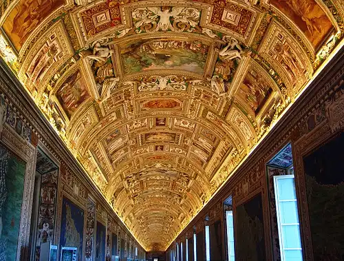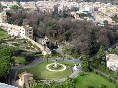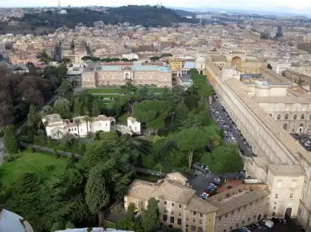 Вид на Ватиканские сады и собор Св. Петра из окон музеев Ватикана.