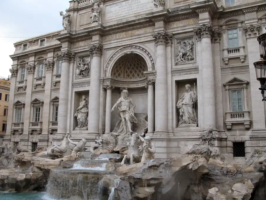 Рим - фонтан Треви - традиционное место бросания монет и загадывания желаний. Сотни евро летят в воду каждый час.