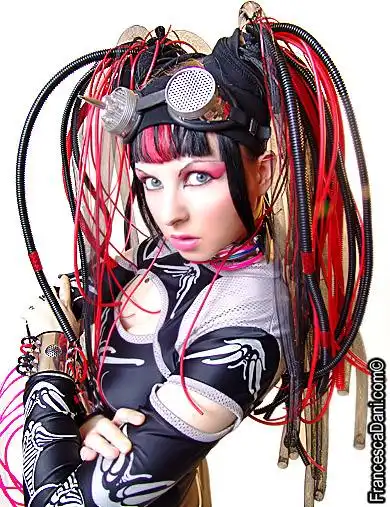 Нередко из-за кибер-украшений голова кибер-гота выглядит куда более электронной, чем даже торс.