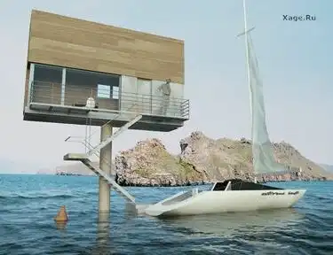Хорошее дизайнерское решение для состоятельных людей, которым надоело чьё-либо общество. Вот и был спроектирован домик, для любителей одиночества или просто некого уединения от окружающих. Вполне могут войти в моду.