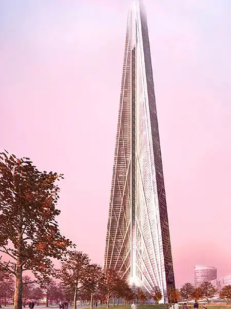 Высота самого высокого небоскреба Европы составит 612 метров. Для сравнения - самый высокий из построенных небоскреб - башня Taipei 101 - "всего" 508 метров в высоту.