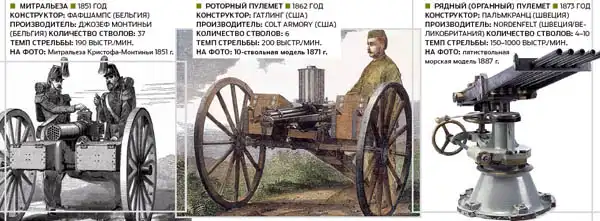Предшественники автоматического оружия. Принцип использования силы отдачи для перезарядки оружия был запатентован в 1854 году Генри Бессемером. Однако до Максима в жизнь воплощались более простые конструкции – с ручным приводом