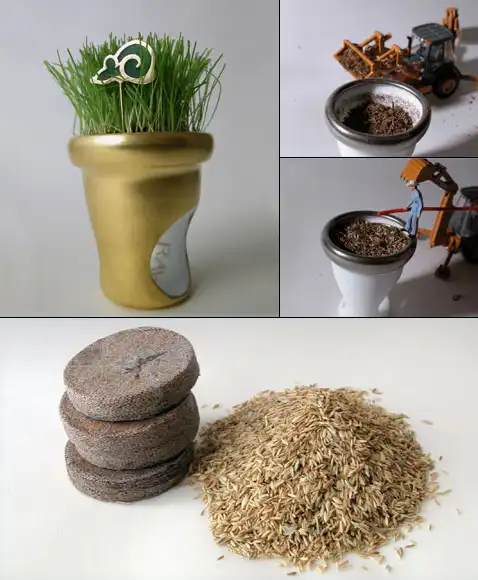 Каждый такой перстень представляет собой миниатюрный горшочек с компостом, укреплённым тканью, в который внедрены семена травы.
