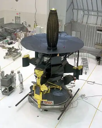 Космический долгожитель АМС "Galileo" начал свое путешествие в октябре 1989 г., покинув на околоземной орбите грузовой отсек КК "Атлантис" (STS-34). За 14 лет полета внутри Солнечной системы общая протяженность сложного пути "Галилео" составила 4 631 778 000 км. Аппарат посетил окрестности Луны и Венеры, впервые получил изображения астероидов с близкого расстояния. Почти достигнув Юпитера - главной цели своей миссии, "Галилео" успел зафиксировать уникальнейшее астрономическое явление - вход в атмосферу этой планеты фрагментов кометы Шумейкеров - Леви 9. Спускаемый аппарат "Галилео" впервые проник под облачный слой Юпитера и передал на Землю сведения о параметрах его атмосферы. "Галилео" многократно приближался к ее спутникам и получил уникальную информацию об их природе. Сделав 35 оборотов вокруг Юпитера, 21 сентября 2003 г. космический аппарат завершил программу в его загадочных глубинах, в последний раз передав уникальные данные о самой крупной планете Солнечной системы.