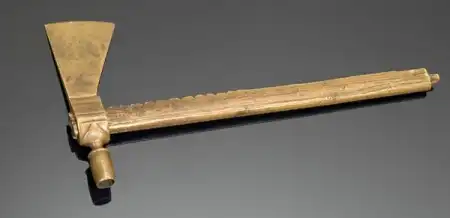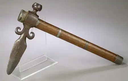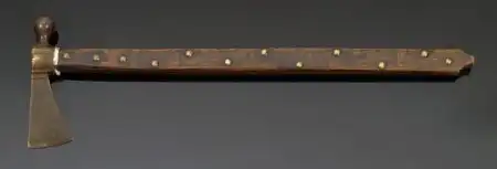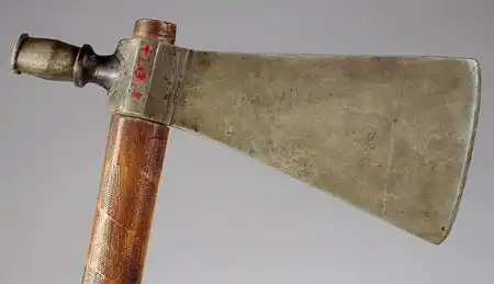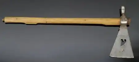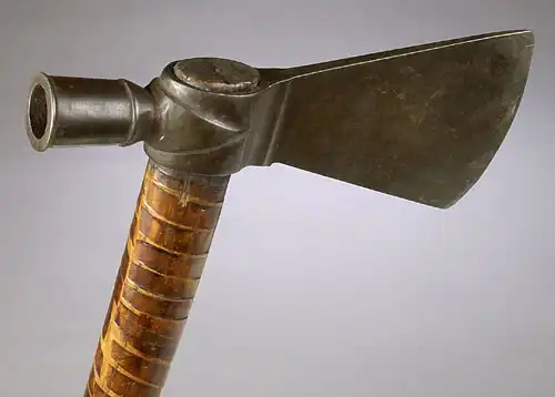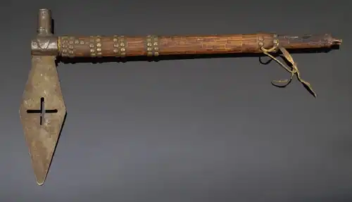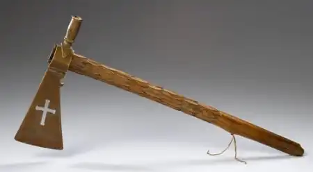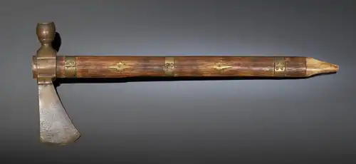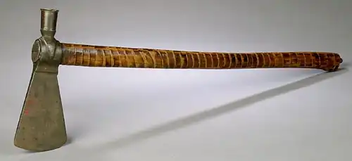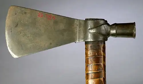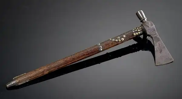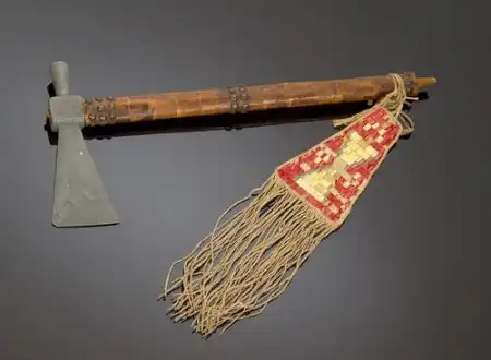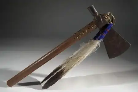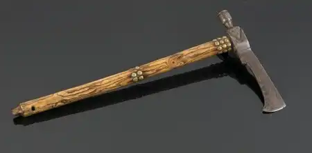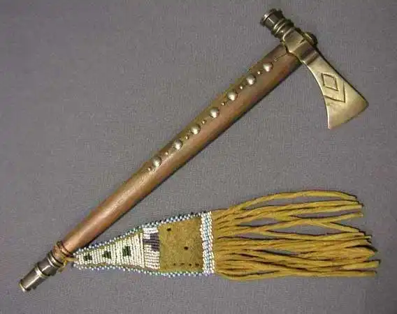 Одним из наиболее желанных европейских товаров ранней торговли были металлические топорики из латуни, железа или стали. Постепенно европейцы модифицировали маленький топор, называемый “томагавк” (приблизительное слово для военной дубинки в алгонкинских языках), приставив к лезвию чашечку трубки. Снабженный просверленным древком, этот военный топорик также мог служить трубкой. Многие такие продавались, а более затейливые передавались в качестве договорных подарков. В некоторых случаях индейцы использовали эти трубки в своих собственных договорных церемониях.