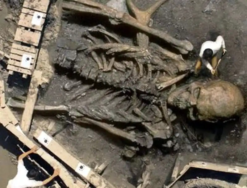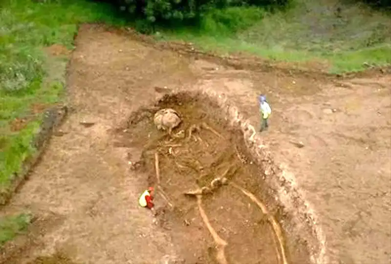 можно понять, сравнив на фотографии размеры скелета и археологов»