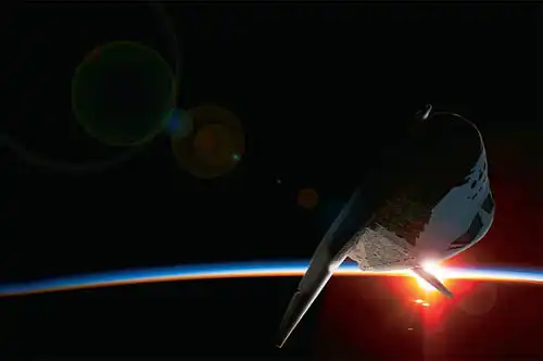 Вариант бескрылого корабля состоял из кабины экипажа в передней конической части, цилиндрического грузового отсека в центральной части и конического хвостового отсека с запасом топлива и двигательной установкой для маневрирования на орбите. Предполагалось, что после запуска (корабль располагался свер-ху ракеты) и работы на орбите корабль входит в плотные слои атмосферы и совершает управляемый спуск и парашютную посадку на лыжи с использованием пороховых двигателей мягкой посадки. Проблема дальности планирования решалась приданием треугольной (в сечении) формы корпусу корабля.