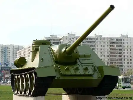 Пушка, установленная в правой передней части боевого отделения в лобовом листе корпуса, обладала исключительной огневой мощью и эффективно вела борьбу с танками противника на всех дистанциях прицельного огня. Бронебойный снаряд с расстояния 2000 метров поражал броню толщиной 139 мм, а на дальности до километра пробивал немецкие танки практически насквозь.