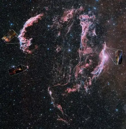 Туманность Вуаль в созвездии Лебедя представляет собой облако от взрыва сверхновой звезды, произошедшего 5-10 тыс. лет назад, сообщают ученые из европейского центра управления телескопом в германском Гархинге, что недалеко от Мюнхена.