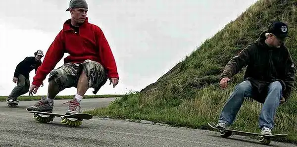 Доска выглядит как скейтборд, но ее отличает большее количество колес (семь штук на подвеске) на дугообразной оси...