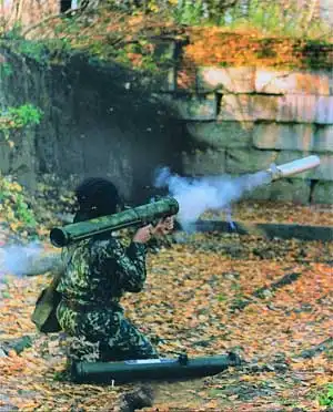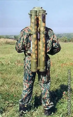 РПО-А (термобарический) - предназначен для поражения укрытых огневых средств в городе, в полевых условиях и в горах, а также для разрушения укрытий, автотранспортной и легкобронированной техники. Боеприпас РПО-А при взрыве создает избыточное давление 0,4-0,8 кг/см2 на расстоянии 5 м от точки взрыва на открытой местности и 4-7 кг/см2 - в помещении объемом 90 м3. Ударная волна может "затекать" в окопы, укрытия и т.д. В зоне детонационных превращений термобарической смеси происходит полное "выгорание" кислорода и развивается температура выше 800 оС.
