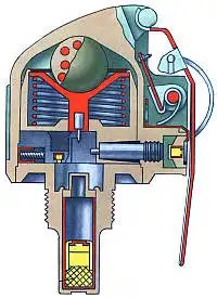 После выдергивания шплинта и броска рычаг под действием пружины отбрасывается от гранаты и освобождает ударник, который поворачивается и накалывает своим жалом капсюль. Луч огня составы дистанционного узла и механизма дальнего взведения. После выгорания последних (1-1,8 с) стопоры отводятся своими пружинами к краю запала и освобождают движок, который смещается под действием своей пружины к оси запала ставит капсюль напротив жала датчика цели. При встрече с преградой груз датчика цели под действием инерции перемещается и вызывает смещение гильзы, в результате которого жало накалывает капсюль. Луч огня инициирует каспюль-детонатор. Последний передает детонацию детонационной шашке, вызывающей подрыв заряда гранаты. Шаровидная форма груза и его крепление позволяют «поймать» составляющую инерции в широком диапазоне углов. В случае несрабатывания датчика цели (падение в грязь, снег, строго «на бок») капсюль-детнатор будет инициализирован от капсюля-детонатора дистанционного устройства после выгорания дистанционного состава (3,2-4,2 с). Температурный диапазон работы запала, как и большинства советских образцов оружия — от -50 до +50 градусов С.