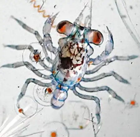 Под первым номером выступает личинка краба…. Меньше четверти дюйма длиной, этот тонкий, прозрачный членистоногий проходит длинный путь созревания прежде, чем достигает зрелости, но все же ее части тела уже различимы и опознаваемы - крошечные клещи, панцирь, огромные глаза…