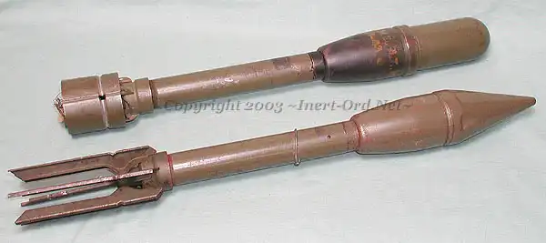 Использовавшаяся для стрельбы реактивная граната M6 состояла из головной части с баллистическим колпачком, кумулятивного заряда, взрывателя с чекой, электрозапала, реактивного порохового заряда и стабилизатора. Длина гранаты 550 мм, диаметр 60 мм. Масса M6 составляла 1.5 кг, из которых 0.7 кг. приходилось на ВВ. Бронепробиваемось - 90 мм. гомогенной брони. Двигатель разгонял реактивную гранату до 85 мс. Граната окрашивалась в оливковый цвет.