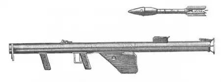 По принципу действия оно относилось к динамореактивному оружию и состояло из открытой с обеих сторон гладкостенной стальной трубы длиной 137 см., электровоспламенительного устройства, предохранительной коробки с контактным стержнем, прицельных устройств и плечевого упора. Масса гранатомета составила 8 кг. На заднем торце трубы было закреплено кольцо, облегчающее вкладывание гранаты в канал ствола, а на переднем торце имелся щиток, предохраняющий стрелка от действия раскаленных газов ракетного двигателя гранаты. Электровоспламенительное устройство, служившее для воспламенения реактивного заряда гранаты, состояло из двух сухих батареек, сигнальной лампочки, электропроводки и контактного замыкателя (спускового крючка). Сухие батареи и сигнальная лампочка находились внутри плечевого упора.