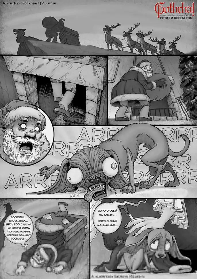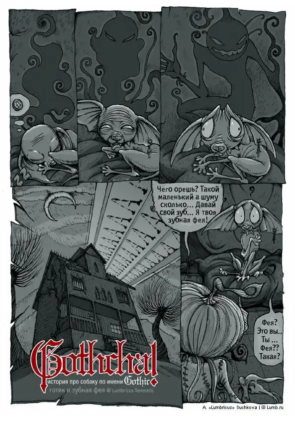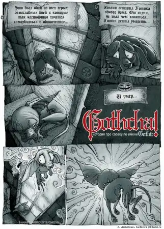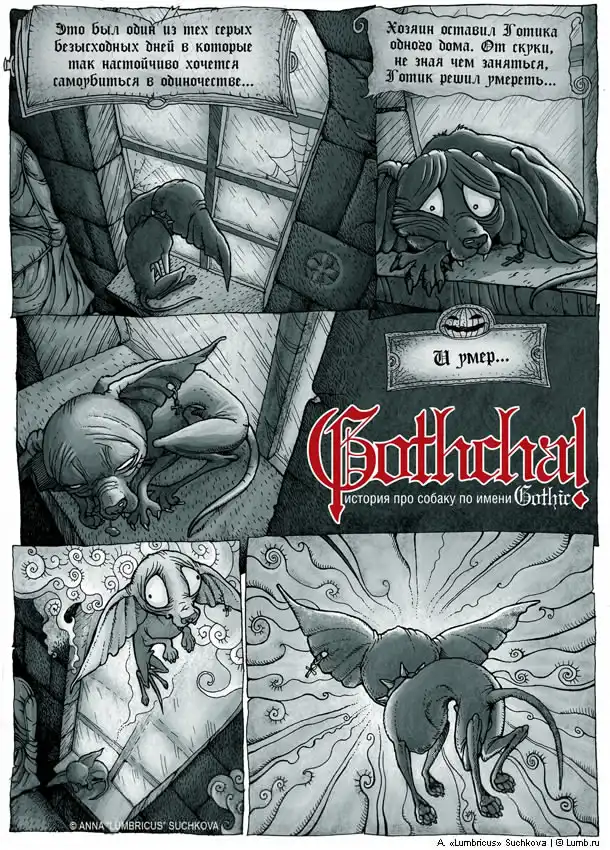 Комиксы эти нарисованы достаточно известной в готической тусовке художницей Lumbricus. Комиксы давно вписаны в историю русской готики, как первый и уникальный представитель своего жанра. Многие из них зажили собственной жизнью и уже не имеют отношение к своей создательнице. Сама же Lumbricus занимается дизайном, а в свободное время рисует комиксы про собаку по имени Готик, которые тут и представлены.