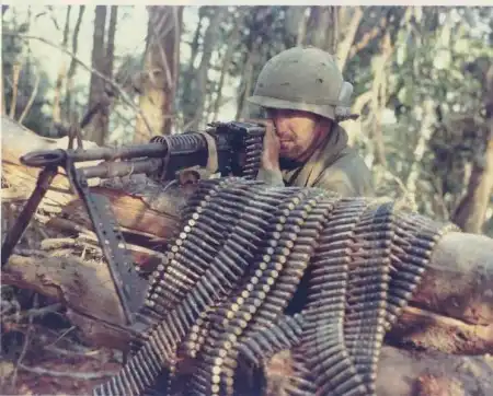 Солдат морской пехоты США с пулеметом М60 во время войны во Вьетнаме