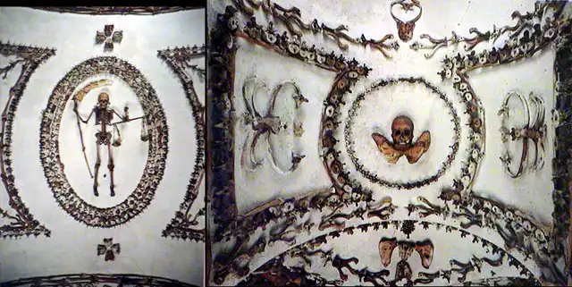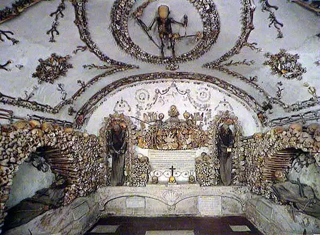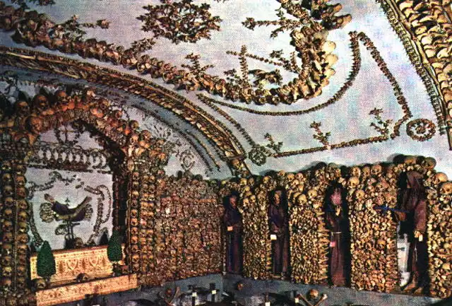 Эту "инсталляцию" итальянских монахов-капуцинов можно увидеть в Риме. Склеп состоит из пяти помещений, для оформления которых были использованы мумифицированные останки и скелеты 4-х тысяч человек. Из костей изготовлены даже подсвечники...