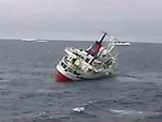 По последним данным, построенное в 1969 году судно водоизмещением 2,4 тысячи тонн натолкнулось на айсберг неподалеку от Южных Шетландских островов. Через пробоину палубу заливает вода. По данным спасательных служб, корабль скоро затонет.