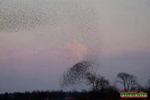 Черное солнце Дании... Весной в этой стране происходит удивительное явление: более миллиона европейских скворцов (sturnus vulgaris) слетаются со всех окрестностей в огромные стаи, приблизительно за час до заката...