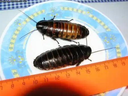Длина тела этих тараканов в среднем составляет 6-7см, но иногда встречаются особи до 9 см. Это средний по размерам вид мадагаскарских тараканов. Самый крупный – принцесия, вырастает до 12 см в длину.